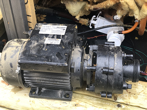 3. Lossa dom muttrar eller skruvar som håller fast pumpen i botten av spabadet, släpp sedan på dom två stora muttrar som sitter kopplade på pumphuset. Koppla också bort och extern jordning som är monterad på pump huset.