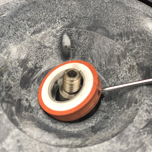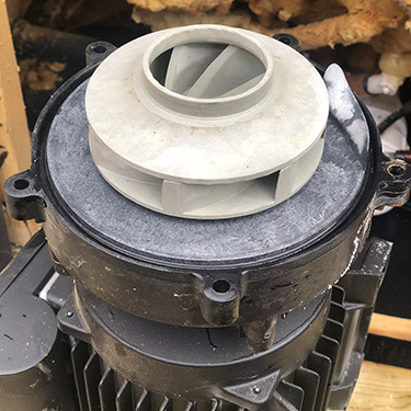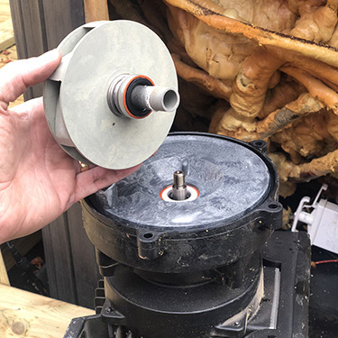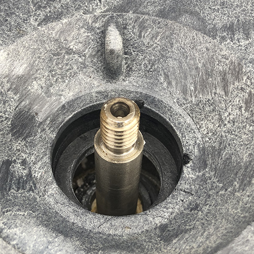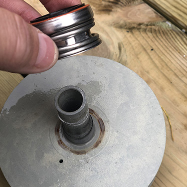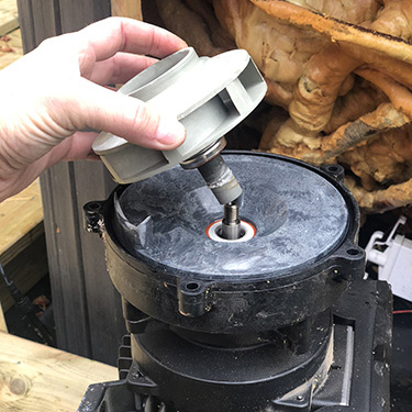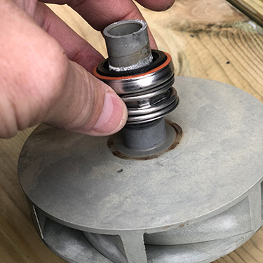 2. Sätt tillbaka impellern på motoraxeln med hjälp av din föredragna metod att hålla motoraxeln på plats. Pumphjulet ska vara tätt men inte överdraget. Använd inte smörjmedel för smörjning, eftersom det kan leda till att den nyansatta tätningen misslyckas om den kommer i kontakt med den.