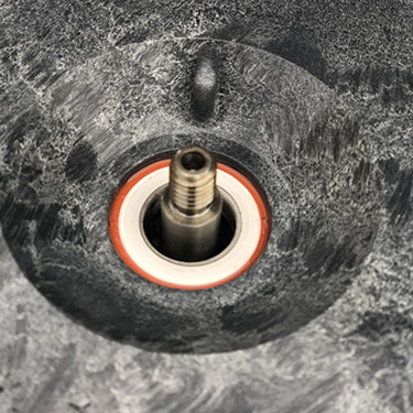 1. Rengör den polerade ytan med luddfri trasa. Denna yta kommer att sitta ihop med den vita delen. Se till att sätet på antingen impellern eller pumphuset också är rent (beroende på pumphuset orientering).