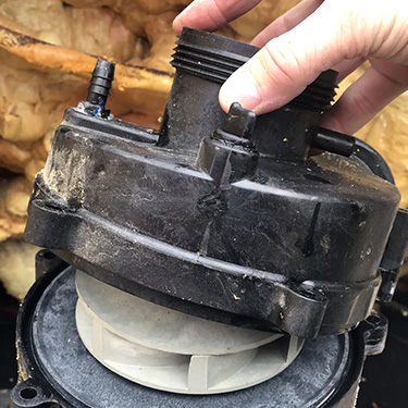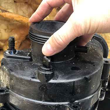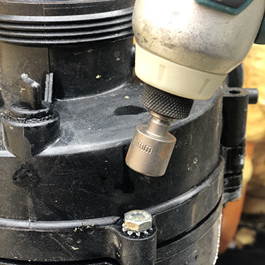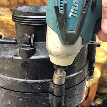 4. Om de inte lossnar lämnar du det pumphuset och fortsätter till nästa steg. Du kommer fortfarande att kunna byta tätningen, det är bara lite lättare om du har pumphuset helt löst.